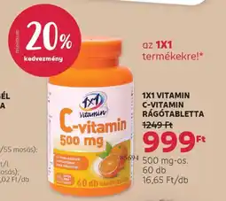 Ezen a héten több 1x1 vitamin akció is érvényes, többek között a(z) Rossmann-nál és más nagy áruházláncoknál. Találsz 1+1 ajánlatokat, 25% kedvezményt vagy extra alacsony árakat 1x1 vitamin C-vitamin rágótabletta, 1x1 Vitamin étrend-kiegészítő és 1x1 Vitamin MultiKid termékekre. Használd a szűrőket, hogy csomagolás típusa, kiszerelés vagy kedvenc bolt szerint szűrj.