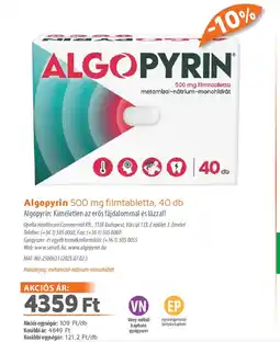 A(z) Alma Gyógyszertárak kínálatában 12.31.2025-től 1 új Algopyrin ajánlat érhető el kedvező áron.