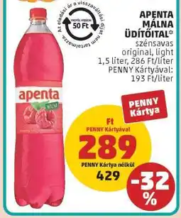| APENTA MÁLNA ÜDÍTŐITAL 1,5 l | PENNY | 429,00 Ft | 279,00 Ft | -34% | 27 december 2025 | 31 december 2025 | |