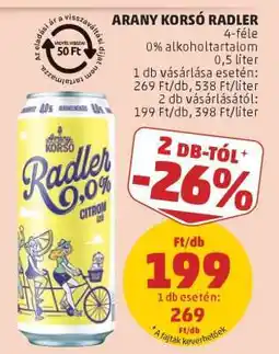 | ARANY KORSÓ ALKOHOLMENTES RADLER 0,5 liter | PENNY | 199,00 Ft | 30 május 2024 | 05 június 2024 | |||