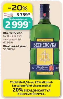 A(z) Auchan kínálatában 04.28.2026-től 1 új Becherovka ajánlat érhető el kedvező áron.
