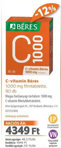 Alma Gyógyszertárak C-vitamin Béres ajánlat