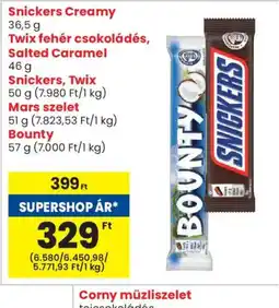 Spar Snickers Creamy, Twix fehér csokoládés, Salted Caramel, Snickers, Twix, Mars szelet, Bounty ajánlat