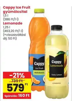 | Cappy Ice Fruit gyümölcsital, Lemonade 1,25-1,5 l | Interspar | 579,00 Ft | 24 július 2025 | 30 július 2025 | |||