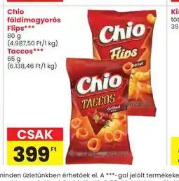| Chio földimogyorós Flips / Taccos | Spar | 399,00 Ft | 30 április 2026 | 06 május 2026 | |||