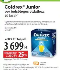 Ezen a héten több Coldrex akció is érvényes, többek között a(z) Pingvin Patika-nál és más nagy áruházláncoknál. Találsz 1+1 ajánlatokat, 25% kedvezményt vagy extra alacsony árakat Coldrex tabletta, Coldrex® Junior por belsőleges oldathoz és Coca-Cola, Zero vagy Fanta szénsavas üdítőital termékekre. Használd a szűrőket, hogy csomagolás típusa, kiszerelés vagy kedvenc bolt szerint szűrj.