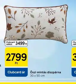 | Őszi mintás díszpárna 30 x 50 cm | Tesco | 3 499,00 Ft | 2 799,00 Ft | Clubcard ár | 25 szeptember 2025 | 01 október 2025 | |