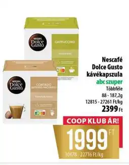 4Coop Nescafé Dolce Gusto kapszula ajánlatNescafé Dolce Gusto kapszula 186,4 g / 187,2 gCoop1 999,00 Ft16 április 202629 április 2026 Ajánlat megtekintése