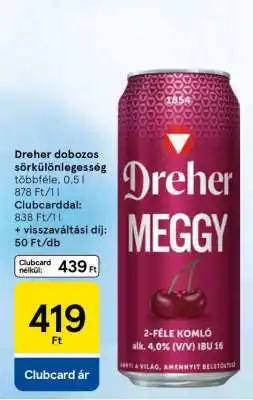 Tesco Dreher dobozos sör ajánlatDreher dobozos sör 330 mlTesco339,00 Ft299,00 Ft40,00 Ft Kedvezményt02 január 202607 január 2026