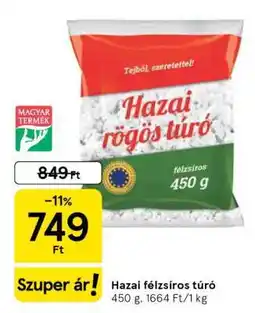 Tesco Magyar félzsíros rögös túró ajánlatMagyar félzsíros rögös túró 400 gTesco824,00 Ft699,00 Ft-15%05 március 202611 március 2026