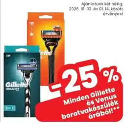 | Gillette és Venus borotvakészülék árából | Spar | -25% | 02 január 2026 | 07 január 2026 | |||