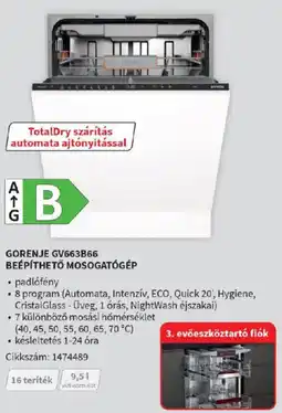 4MediaMarkt Gorenje GV663A66 beépíthető mosogatógép ajánlatGorenje GV663A66 beépíthető mosogatógépMediaMarkt04 február 202628 február 2026 Ajánlat megtekintése