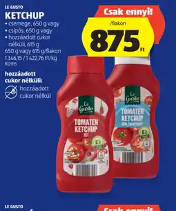 1ALDI LE GUSTO KETCHUP ajánlatLE GUSTO KETCHUP 650 g vagy 615 gALDI875,00 Ft22 január 202628 január 2026 Ajánlat megtekintése