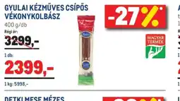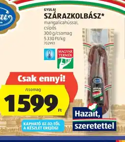 A Gyulai ismert márka már több, mint 150 éve töretlen sikert arat, következetes minőségének és szuper ár-érték arányának köszönhetően piacvezetőként lehet jelen az élelmiszeripar kiemelt ágazatában. A kiváló alapanyagok és a magas szakértelem, egyúttal a gyulai hagyományok tökéletes egyvelege által Te is finom kolbászkülönlegességeket kóstolhatsz meg nap mint nap. A termékek széleskörű választékában sem fogsz csalódni, ugyanis válogathatsz szárazkolbászok, szalámik, májasok, szarvas termékek, sonkák, felvágottak, és még főtt-füstölt termékek kínálatából is! Az Ajanlatok.hu akciós újság gyűjteményében mindezt megtalálhatod kuponok és különféle akciók által, hogy kedvező árakkal számolhass ahhoz, hogy jól lakhass egy kiadós reggeli, ebéd, vagy akár vacsora során. A népszerű szárazkolbászok megvásárolhatók lángolt Gyulai, kézműves vastag kolbász Gyulai vastagkolbász, parasztkolbász, diákcsemege, és még sok más változatban egyaránt, így nem kell aggódnod afelől, hogy nem találod meg a kedvenced közöttük! Ajánlatainkat és Gyulai akcióinkat beszerezheted a Tesco, a Spar, az Auchan, és még sok más élelmiszerüzlet és nagyobb áruház kínálatából, hogy hamar elfogyaszthasd az ismert alapélelmiszereket.