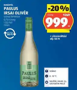 | DUNÁNTÚL IRSAI OLIVÉR 0,75 l | ALDI | 849,00 Ft | 699,00 Ft | 150,00 Ft Kedvezményt | 29 június 2023 | 05 július 2023 | |