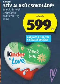 | Kinder Szív alakú csokoládé 37 g | ALDI | 599,00 Ft | 05 február 2026 | 11 február 2026 | |||