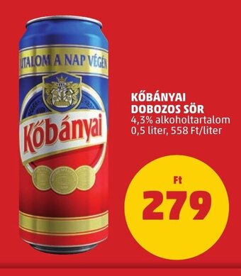 | KŐBÁNYAI DOBOZOS SÖR 0,5 l | PENNY | 379,00 Ft | 289,00 Ft | -23% | 11 december 2025 | 17 december 2025 | |