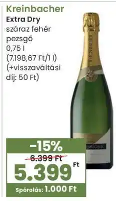 | Kreinbacher Extra Dry pezsgő 0,75 l | Spar | 4 999,00 Ft | 23 december 2025 | 02 január 2026 | |||