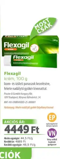 | Flexagil krém 100 g | Mosoly patikák | 5 277,00 Ft | 4 749,00 Ft | -10% | 01 február 2026 | 28 február 2026 |