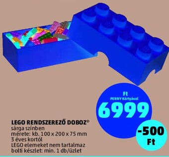 | LEGO RENDSZEREZŐ DOBOZ | PENNY | 7 499,00 Ft | 6 999,00 Ft | 500,00 Ft Kedvezményt | 15 június 2023 | 21 június 2023 |