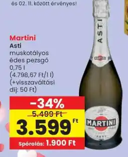 Spar Martini Asti ajánlatMartini Asti 0,75 l (4.532 Ft/l)Spar3,40 Ft06 november 202512 november 2025