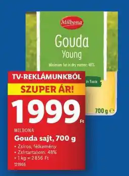 | Milbona Gouda sajt 700 g | Lidl | 2 199,00 Ft | Gouda Young | 04 december 2025 | 10 december 2025 | ||