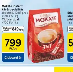 Tesco Mokate 3in1 Classic azonnal oldódó kávéspecialitás ajánlatMokate 3in1 Classic azonnal oldódó kávéspecialitás 24 x 17 gTesco1 789,00 Ft1 399,00 Ft390,00 Ft Kedvezményt02 január 202607 január 2026