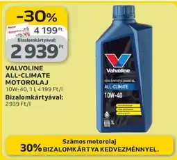 | VALVOLINE ALL-CLIMATE MOTOROLAJ 1 l | Auchan | 4 199,00 Ft | 2 939,00 Ft | 1 260,00 Ft Kedvezményt | 23 október 2025 | 29 október 2025 | |
