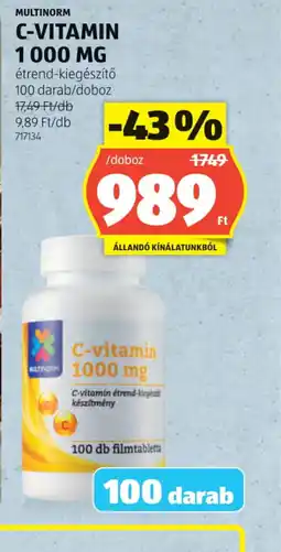| MULTINORM C-VITAMIN 1 000 MG 100 db | ALDI | 1 999,00 Ft | 1 399,00 Ft | 600,00 Ft Kedvezményt | 16 november 2023 | 22 november 2023 | |