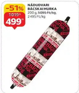 | NÁDUDVARI BÁCSKAI HURKA 200 g | Auchan | 999,00 Ft | 599,00 Ft | -40% | 11 december 2025 | 17 december 2025 | |