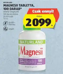 | Naturland Magnesii tabletta 100 db | ALDI | 2 499,00 Ft | 100 darab | 09 január 2025 | 15 január 2025 | ||