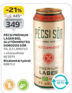 Auchan PÉCSI PRÉMIUM LAGER BIO SÖR ajánlatPÉCSI PRÉMIUM LAGER BIO SÖR 0,5 lAuchan445,00 Ft349,00 Ft-21%27 december 202531 december 2025