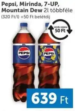 | Pepsi, Mirinda, 7-Up, Mountain Dew 2 l | PRIVÁT | 639,00 Ft | 26 február 2026 | 04 március 2026 | |||