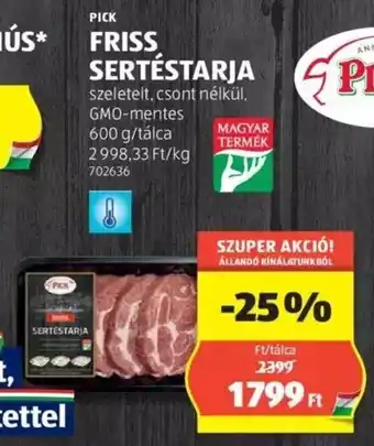 | Pick friss sertéstarja 600 g | ALDI | 2 399,00 Ft | 1 799,00 Ft | -25% | 05 december 2024 | 11 december 2024 | |