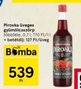 | Piroska üveges gyümölcsszörp 0,7 l | Tesco | 799,00 Ft | 545,00 Ft | 254,00 Ft Kedvezményt | 12 április 2023 | 19 április 2023 | |