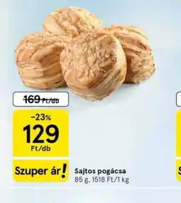 1Tesco Sajtos pogácsa ajánlatSajtos pogácsa 65 gTesco169,00 Ft129,00 Ft-23%08 január 202614 január 2026 Ajánlat megtekintése