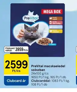 Tesco PreVital macskaeledel multipack ajánlatPreVital macskaeledel multipack 12x100 gTesco1 999,00 Ft1 799,00 Ft200,00 Ft Kedvezményt08 január 202614 január 2026