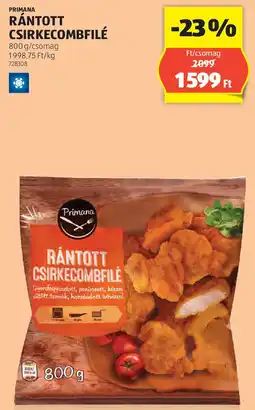 ![]() | PRIMANA RÁNTOTT CSIRKECOMBFILÉ | ALDI | 1 349,00 Ft | 03 július 2025 | 09 július 2025 | ||
