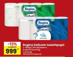 | Regina Delicate toalettpapír 8 tekercs, 150 lap | Interspar | 1 499,00 Ft | 999,00 Ft | -33% | 27 február 2025 | 05 március 2025 | |