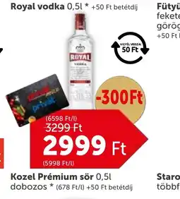 | Royal vodka 0,5 l | PRIVÁT | 3 299,00 Ft | 2 999,00 Ft | -300 Ft | 15 január 2026 | 21 január 2026 | |
