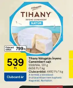 | Tihany Camembert sajt 120 g | Tesco | 799,00 Ft | 569,00 Ft | Clubcard ár | 16 október 2025 | 20 október 2025 | |