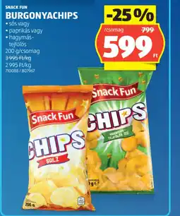 | 2 | SNACK FUN BURGONYACHIPS 200 g | ALDI | 799,00 Ft | 599,00 Ft | -25% | 24 december 2025 | 31 december 2025 | Ajánlat megtekintése | |