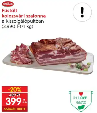 | Regnum Füstölt kolozsvári szalonna 10dkg | Spar | 499,00 Ft | 399,00 Ft | 100,00 Ft Kedvezményt | 03 április 2025 | 09 április 2025 | |