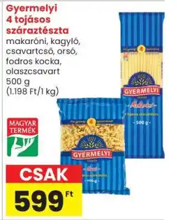 | Gyermelyi 8 tojásos száraztészta 250g | Spar | 649,00 Ft | 419,00 Ft | 230,00 Ft Kedvezményt | 01 február 2024 | 07 február 2024 | |