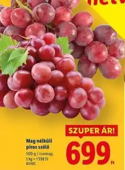 Lidl Mag nélküli piros szőlő ajánlatMag nélküli piros szőlőLidl699,00 Ft05 február 202611 február 2026