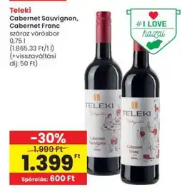 Ezen a héten több Teleki akció is érvényes, többek között a(z) Interspar-nál és más nagy áruházláncoknál. Találsz 1+1 ajánlatokat, 25% kedvezményt vagy extra alacsony árakat Teleki, TELEKI CABERNET SAUVIGNON és TELEKI VÁLOGATÁS OLASZRIZLING termékekre. Használd a szűrőket, hogy csomagolás típusa, kiszerelés vagy kedvenc bolt szerint szűrj.