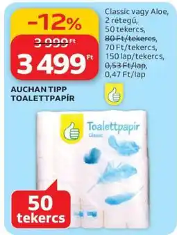 | AUCHAN TIPP TOALETTPAPÍR | Auchan | 2 799,00 Ft | 24 július 2025 | 30 július 2025 | |||