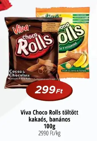 | Viva Choco Rolls töltött kakaós, banános 100g | Real | 299,00 Ft | 10 január 2024 | 21 január 2024 |