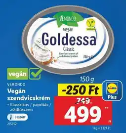 | Vemondo Vegán szendvicskrém 150 g | Lidl | 749,00 Ft | 499,00 Ft | Lidl Plus-szal -250 | 25 szeptember 2025 | 01 október 2025 | |