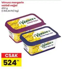 | Vénusz margarin valódi vajjal 450 g | Interspar | 524,00 Ft | 08 január 2026 | 14 január 2026 | |||